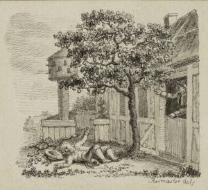 M. SCHWIND (1804-1871) Umkreis, Brunnen und Viehtränke, um 1840, Feder Romantik