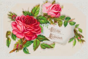 Unbekannt (19.Jhd), Glückwunschkarte mit Rosenzweig, um 1900, Biedermeier