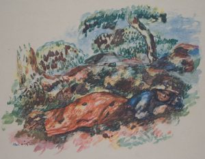 Nach RENOIR (*1841), Mädchen im Gras liegend, Moderne Personen