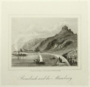 Unbekannt (19.Jhd), Rheinansicht bei Braubach mit Marksburg, Sst. Romantik