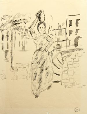 VIRIEZ (19.Jhd), Karikatur. Die Treppen, Tusche Jugendstil Karikatur