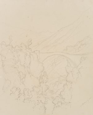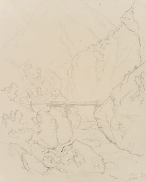 E. BRETENIÈRES (*1804), Brücke im Reusstal, Gotthardpass, 1859, Bleistift