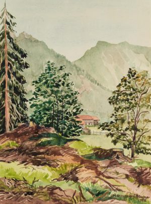 M. BRENNAUER-BÄUMER (20.Jhd), Bewaldete Landschaft mit Gehöft, 1952, Moderne