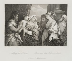 SCHULTHEISS (*1823) nach TIZIAN (*1488), Maria mit dem Christuskind und vier Hei