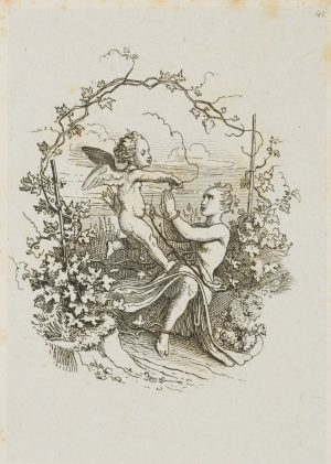 M. SCHWIND (1804-1871), Amor als Jüngling (Arabeske), Radierung Romantik