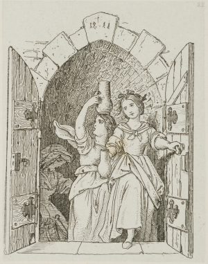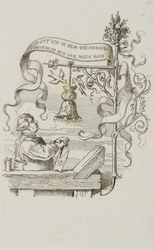 M. SCHWIND (1804-1871), Das Weinhauszeichen, Radierung Romantik Trachten