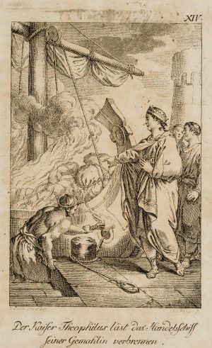 M. SCHWIND (1804-1871), Dürft’ ich wohl um Feuer bitten?, Radierung Romantik