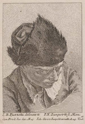 JUNGWIERTH (*1720) nach PIAZZETTA (*1682), Kopfstudie mit Pelzmütze, Rad.