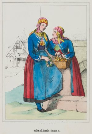 Unbekannt (19.Jhd), Westfälische Volkstrachten, aus einer Enzyklopädie, 1893,