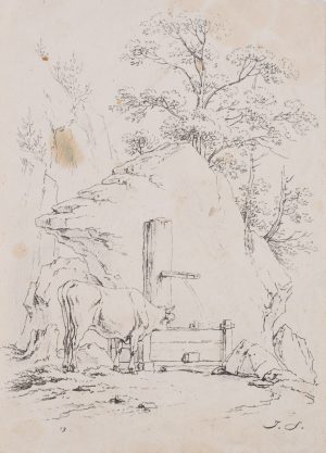 J. SCHINDLER (*1777), Trinkende Kuh am Brunnen, Realismus Landschaft
