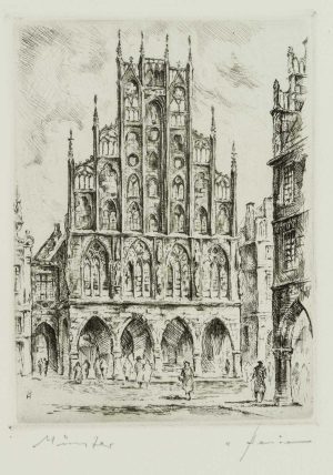 Unbekannt (20.Jhd), Das historische Rathaus v. Münster, Rad. Realismus Architekt