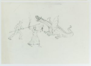Unbekannt (20.Jhd), Kampf mit dem Drachen, Bleistift Moderne Architektur