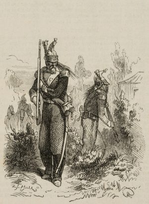 Unbekannt (19.Jhd), Preußische Dragoner bei Aufklärung zu Fuß, Romantik
