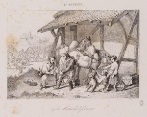 ELMERICH (*1813) nach BELLANGÉ (*1800), Meldereiter beim Hufschmied, Rad.