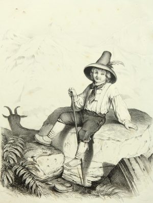 Unbekannt (19.Jhd), Tiroler Hirtenknabe rastet bei seiner Herde, Romantik