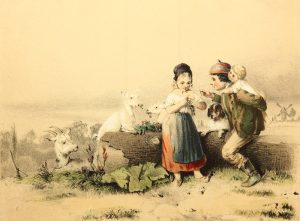 F. TEICHEL (*1816) zug., Ländliche Freuden, Kindliches Liebespaar, Romantik