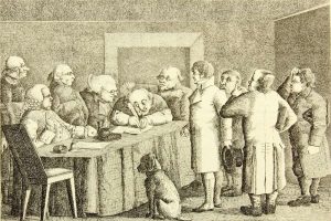 F. ROTTMANN (1768-1816), “Der Maler vor Gericht”, Satire, Radierung Romantik