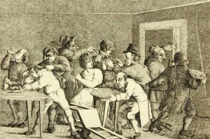 F. ROTTMANN (1768-1816), “Der Maler im Wirtshaus”, Satire, Radierung Romantik