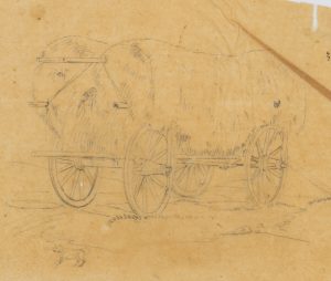 M. SCHWIND (1804-1871) Umkreis, Skizze eines Leiterwagens mit Heu, um 1840, Blei