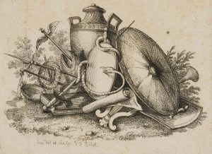 G. RIEDEL (1724-1784), Vignette mit symbolischen Gegenständen, Rad. Romantik