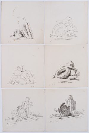 C. (18.Jhd) nach M. (18.Jhd), Aufgereihte Vasen, um 1770, Römisch Stillleben