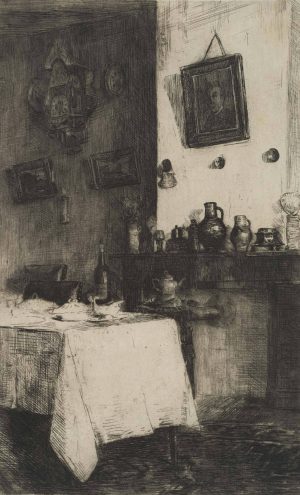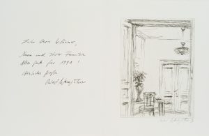 R. WEINGÄRTNER (*1955), Karte mit Interieur und Widmung, 1990, Moderne
