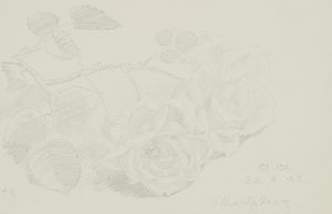 E. STEPPES (1873-1968), Rosen, 1942, Bleistift Moderne Stillleben