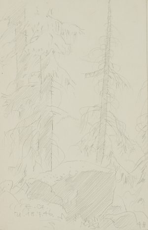 E. STEPPES (1873-1968), Tannen im Wald, 1946, Bleistift Moderne Stillleben