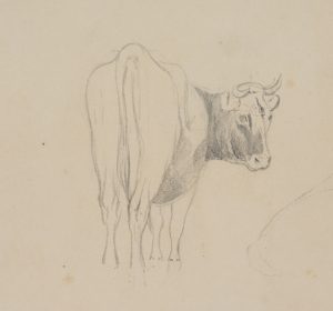 T. WEBER (1813-1875), Tierstudie. Kuh in Rückenansicht, Bleistift Realismus