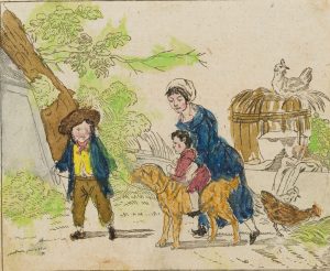 Unbekannt (19.Jhd), Ländliche Familienszene. Mutter mit Kindern., Biedermeier