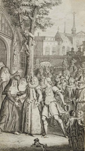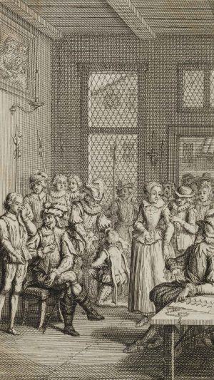 Unbekannt (18.Jhd), Dramenillustration, Kostümszene, Vignette, Rad. Figürlich