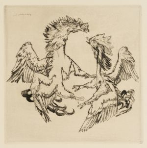 L. JUNGNICKEL (*1881), Hahnenkampf, 1916, Radierung Moderne Tiere