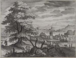 M. MERIAN (1593-1650), Landschaft bei Basel, mit Schnecke, um 1624, Barock
