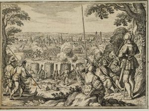 M. MERIAN (1621-1687), Die Besetzung von Rostock 1573, Barock Militär